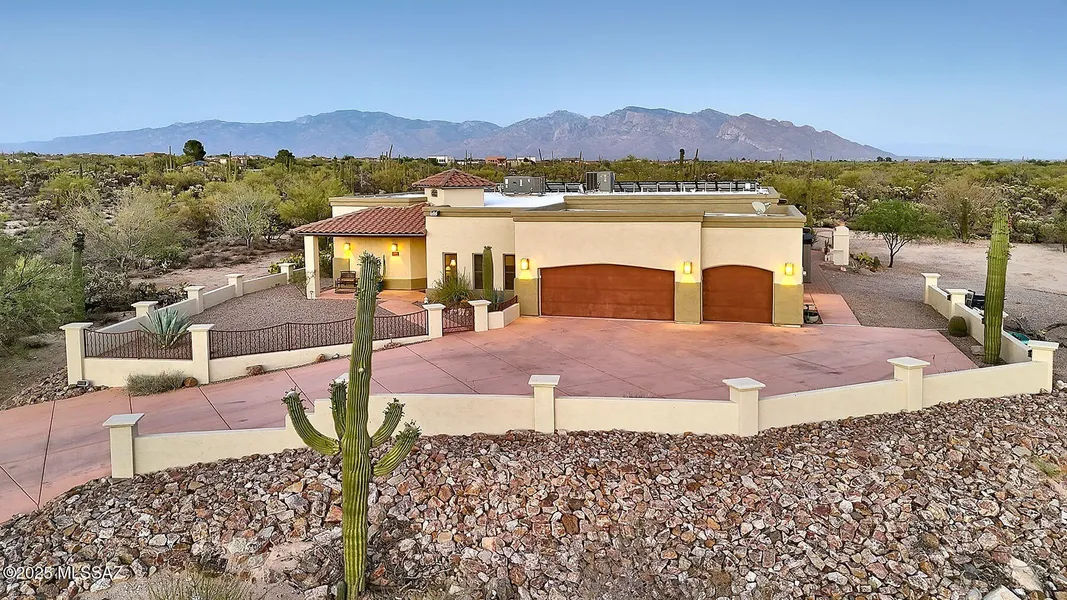 Private Southwest Retreat on 3.31 Acres with Panoramic Catalina Mountain Views! This custom 2007-built home offers true desert living with complete privacy, no HOA, and 360° unobstructed views. Interior highlights include barrel-rolled ceilings with brick accents, solid knotty alder doors, and quality craftsmanship throughout. Recent 2023 upgrades: new HVAC, full exterior paint, and roof re-coating. Energy-efficient with paid-off Tesla solar system. Enjoy the new covered pergola with built-in grill—ideal for entertaining. Landscaped front and back yards blend into natural desert. Zoned SR with room for RVs, horses, guest casita, or expansion. Spacious 3-car garage. Accessed by a private, well-maintained gravel road, this is a rare chance to own a true desert sanctuary.