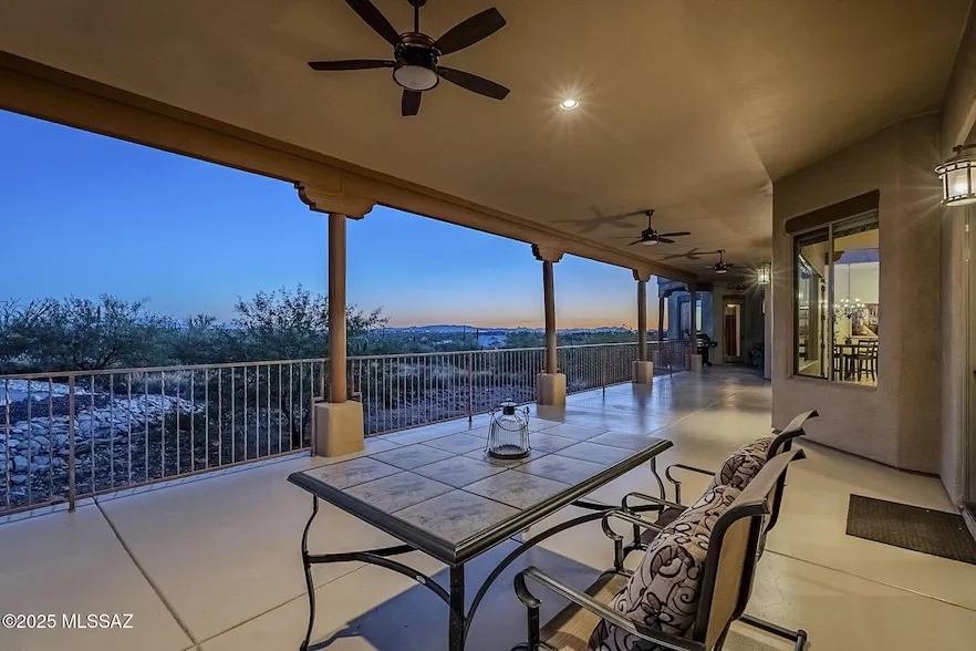 Stunning southwestern style home nestled on 3.31 private acres in gated community with breathtaking mountain views & starry nights. This 5BD/3BA features 3,318 sqft of living space with Viga beam ceilings, travertine floors & alder doors/cabinets throughout. The chef's kitchen boasts SS appliances, island with prep sink, granite counters & abundant cabinetry. Enjoy the amazing desert sunsets & city lights from the expansive covered patio, relax by the cozy kiva fireplace in the great room or retreat to the luxurious primary suite w/jetted tub, walk-in closet & sitting area. Over height, extended length 3-car garage w/storage cabinets plus a heated/cooled workshop/storage room. Near Mt Lemmon, Agua Caliente Park, hiking & biking trails, and in Tanque Verde School District. Voluntary HOA.