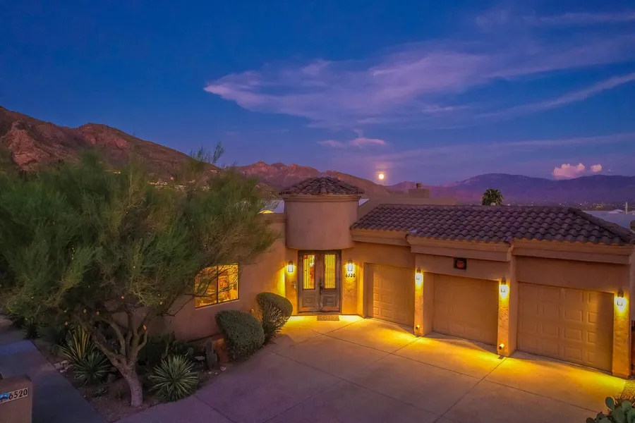 This stunning 4,241 sq. ft. residence in Alta Vista Village II combines timeless elegance with soft contemporary design. Featuring 5 bedrooms and 5 bathrooms, the home is filled with natural light from expansive floor-to-ceiling windows that frame sweeping city and mountain vistas. High ceilings with exposed wood beams add warmth and character, while Tiffany chandeliers throughout the home provide an unmistakable touch of sophistication. The gourmet kitchen showcases an oversized granite island and abundant custom cabinetry, seamlessly connecting to the spacious living areas. Travertine flooring flows throughout the main spaces, and each bathroom is finished with granite countertops for a refined, cohesive look. Four of the bedrooms are en-suite, offering comfort and privacy for