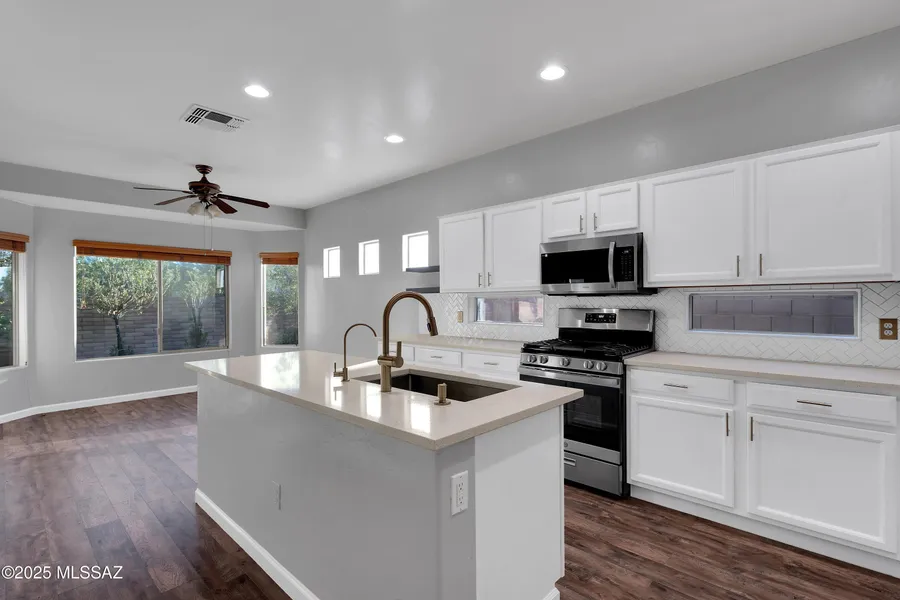 Welcome to a beautifully updated Continental Reserve home just minutes from I-10. Enjoy new Milgard windows and sliding door (2024), quartz counters, refreshed cabinets, new sink, hardware and appliances. Bright kitchen with bay window, spacious dining area, and a flexible den. Large laundry room with cabinets. Major upgrades include water softener, interior paint (2022), Lennox 18 SEER HVAC with smart thermostat (2022) and Rheem water heater (2021). Tandem 3-car garage with epoxy floors, built-ins and backyard access. Move-in ready comfort and efficiency!