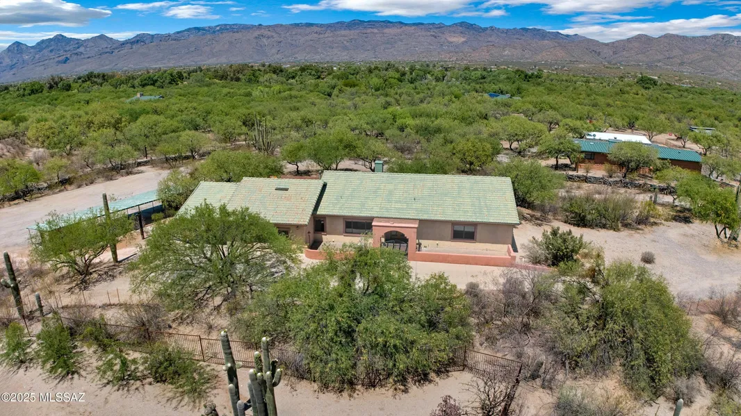 Nestled on 3.3 acres of lush mesquite studded lot offers panoramic Catalina and Rincon mountain views. This treasured home offers 3 Bedroom, 3 bath encompassing 2859 sq ft. Inviting entry courtyard entry to the living room with soaring ceilings, concrete flooring, heatilator fireplace and picture windows that capture the views. Luxurious primary suite boasts jetted tub, separate walk in shower, dual vanity and large walk in closet. Den or family room offers french doors to the backyard deck. Outside enjoy a covered patio to take in the desert landscape. The 6 car carport used to be horse stalls and a barn. This could be converted back if needed. This home offers flexibility for a variety of lifestyles from car enthusiasts and hobbyists to nature lovers and horse owners.