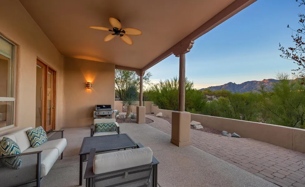 Unsurpassed views & privacy from this quality custom home on a 2-acre lot conveniently located in gated Bellas Catalinas Estates-the hidden gem of the central foothills. Simplify your lifestyle from high up on an elevated homesite without sacrificing views, privacy or location. A long concrete driveway leads you to a spacious motorcourt. The path through the courtyard leads to a clean & contemporary great room w/ high ceilings & a gas FP, walls of windows & a spacious dining area. Kitchen w/ w/ wraparound bar is open to the great room combining an open feel w/ an efficient use of space. Kitchen w/ granite counters, custom cabinetry, & SS refrigerator. picture windows capture desert landscape, covered patios & moon garden. New patio off master suite w/ new hot tub.