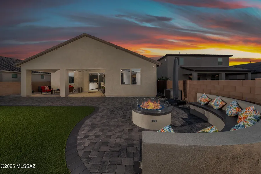 Outdoors, experience true Arizona living with a custom-designed backyard retreat. Dual fire pits, an outdoor kitchen, and plenty of seating areas make this space ideal for hosting gatherings or enjoying peaceful desert evenings.