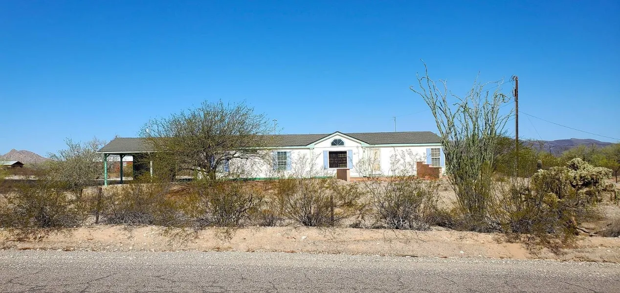 Beautiful views and Quiet enjoyment! 3BR/2ba affixed manufactured home sits on 2 acres with stunning views of the Sonoran Desert. Approx 1900sq ft. The main home offers 2BRs and a full bath at the south end of the home and the north end you will find the Master Suite and a full bath. In between are the family and formal living rooms, dining room with sliders going out to the covered patio. Plenty of room in the kitchen for a breakfast nook. Large inside laundry room with ample space for an extra refrigerator or freezer. The back patio is covered for outside enjoyment and offers a jacuzzi surrounded by a privacy fence. Several outbuildings are on the property for extra storage. Located on the eastside of the acreage is the tiny home. The home is a 1 BR/1bath fully furnished home. There is a long-term tenant in place at the present but has potential to make a great Airbnb or mother-in-law ...