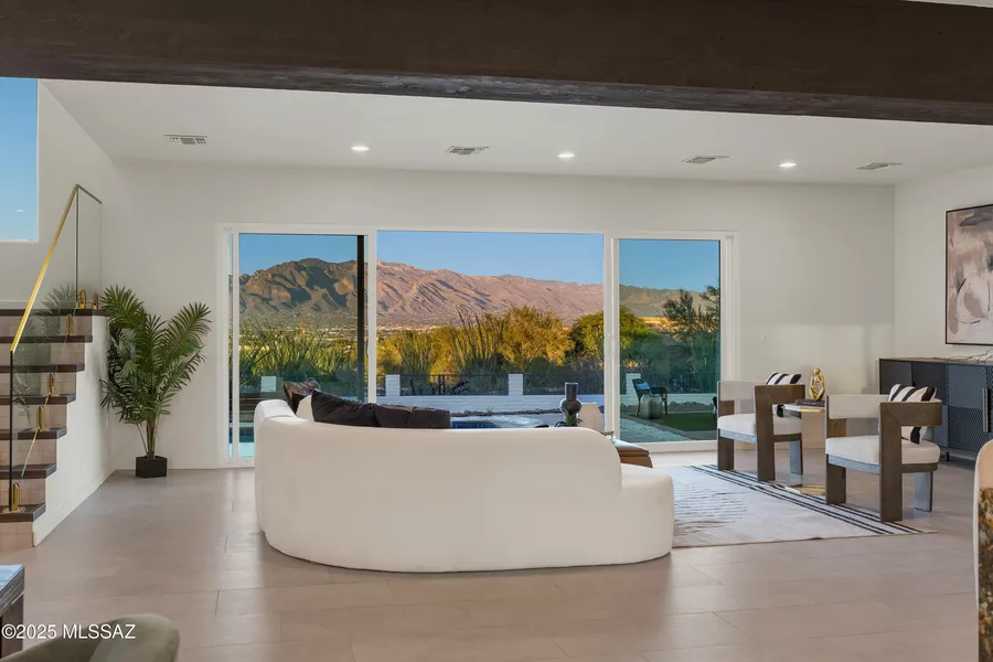 Discover modern desert luxury in this newly remodeled architectural masterpiece on Tucson's West Side. Perched on nearly an acre, this home offers privacy, panoramic city lights, and breathtaking Catalina Mountain views from every room. The open-concept layout features expansive glass sliders, a designer kitchen with waterfall granite island, and high-end appliances. Enjoy a resort-style backyard with pool, patios, and sunset views. Upstairs, a loft opens to a view balcony—ideal for relaxing or entertaining. Every bath is reimagined with spa-like finishes. Minutes from Downtown Tucson, Starr Pass, and top dining, this home blends luxury, livability, and stunning desert beauty. Agent/Owner This stunning modern home has been fully reimagined from top to bottom, offering a rare combination of privacy, design, and panoramic views. Every detail was thoughtfully selected to complement the home's clean architectural lines and connection to its natural desert surroundings.