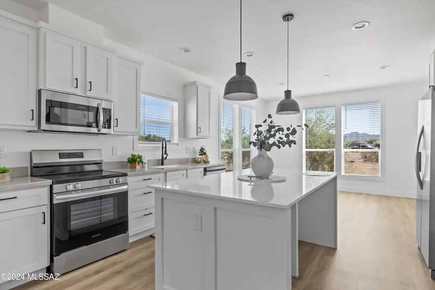 Brand new home on a one acre parcel with an open floor plan, modern cabinets, custom backsplash - New A/C with warranty. This kitchen has a very large walk in pantry, oversized island / breakfast bar with quartz counter top and SS appliances. A 3 bdrm 2 bath home that is Move in ready! Bring your toys or RV. No HOA! Enjoy the beautiful sunsets and mountain views in your new home. Home has a one year warranty with the builder.