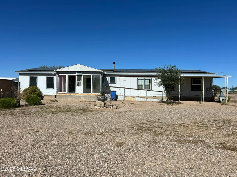 Enjoy peaceful desert living on 1 acre with this partially remodeled 4 bed, 2 bath manufactured home. Features include a freshly updated kitchen, spacious living room with dual side fireplace, Arizona room, and enclosed patio. Take in the stunning mountain views and gorgeous sunrise and sunset skies. Added peace of mind with a new roof, newer HVAC and newer water heater. Plenty of room for horses, RV, and all your toys. The perfect blend of privacy, space, and comfort-country living close to town amenities. Enjoy little to no electric bill! Seller has agreed to payoff solar!