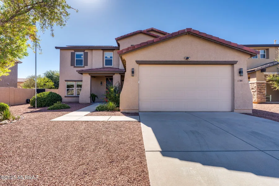 Assumable 3.5% loan available. Discover this spacious and well-maintained 4-bedroom, 3-bathroom contemporary two-story home in the tranquil Black Horse subdivision of Tucson. Enjoy scenic mountain views and family-friendly amenities in a peaceful setting. The beautifully appointed kitchen features Zodiac quartz countertops, rich cherry cabinetry with crown molding, stainless steel appliances, and generous cabinet and counter space. An open-concept layout flows seamlessly into the great room with fireplace, dining area, and game room--ideal for both everyday living and entertaining. Upstairs, the primary suite offers a large walk-in closet, dual sinks, soaking tub, and a separate shower. A spacious loft adds flexibility for a home office, media room, or play area.