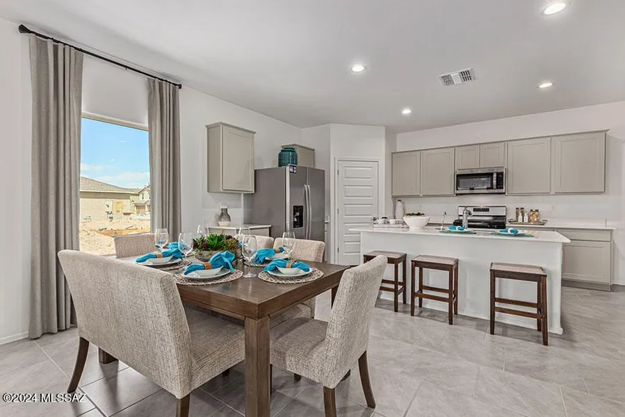 Welcome to Senita Crossing, where spacious living meets convenience! Our newest Tucson community boasts this open floor plan ideal for modern living. Enjoy the perks of a community park just steps away, with easy access to I-10, DMAFB, TIA, University of Arizona, and Downtown Tucson. Inside, you'll find a host of premium features, including stainless steel appliances (microwave, dishwasher, gas range), walk-in pantry, white shaker cabinets, granite countertops, and tile flooring in most areas. Say goodbye to cold showers with a tankless water heater and embrace the future with smart home technology. Plus, enjoy the convenience of water filtration at the kitchen sink and the added efficiency of a radiant roof barrier. Don't miss out on the opportunity to make Senita Crossing your new home
