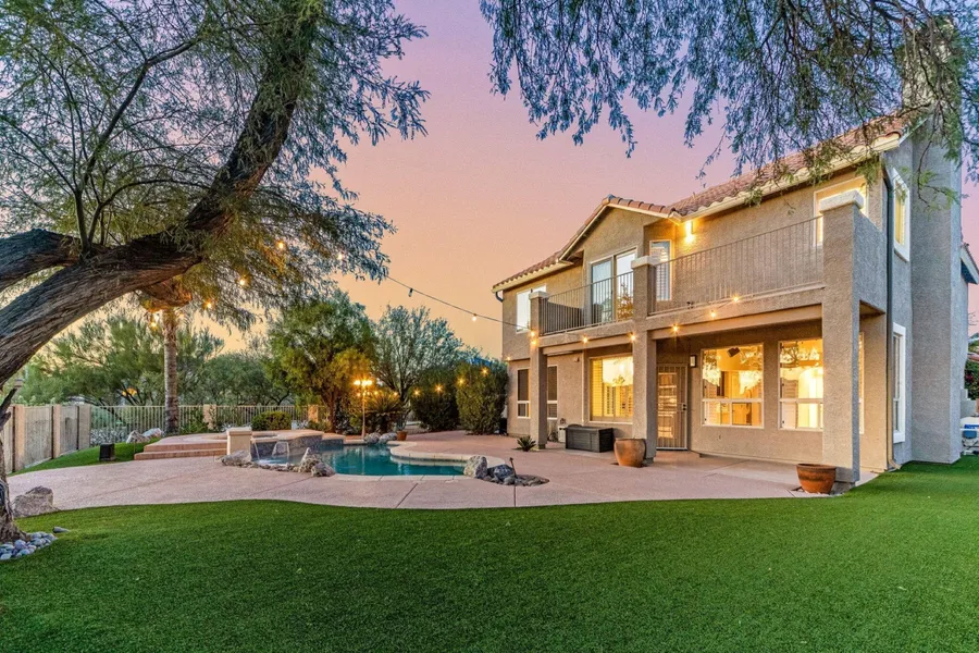 The backyard is a desert sanctuary with excellent privacy and amenities. With a large swimming pool, in ground spa, e...