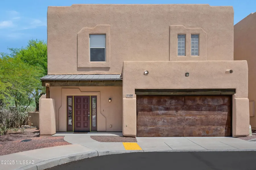 Welcome to Irwin Place, a charming enclave of beautifully crafted 2-story Pueblo-style homes tucked away on a quiet cul-de-sac in central Tucson. This 3-bedroom, 2.5-bath residence boasts 1,525 sq ft of thoughtfully designed living space featuring a walk-out balcony, spacious great room, and custom upgrades throughout. Enjoy porcelain tile floors, granite kitchen counters, stainless steel appliances, and elegant Cardell shaker-style cabinetry. With soaring ceilings, ample natural light, and sound-insulated bedrooms, every corner of this home offers comfort and quality. Additional highlights include a 2-car garage with a rusted metal door, executive-height vanities, in-unit laundry, and energy-efficient TEP construction.