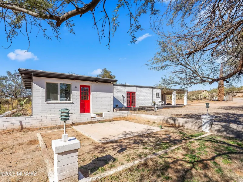 If you're seeking peaceful rural living on a large lot with mountain views & a POOL, look no further! Welcome to this cozy one-bedroom, one-bathroom home, nestled at the base of the iconic Catalinas & Pusch Ridge. Situated on just under one-acre, there is plenty of room to live & enjoy. No HOA means you can bring your RV, toys & furry friends with uninterrupted enjoyment! Updated, modern interior with open-concept living make this home ever-so inviting. The kitchen is fitted with modern black cabinetry, a tile backsplash to the ceiling, accent lighting, butcher block countertops, stainless-steel appliances & built-in dining. The bathroom offers a dual butcher block vanity with glass sinks & large walk-in shower with dual shower heads. The bedroom space is expansive, fit for a king-sized bed with a walk-in closet/office combination space of your dreams! The home is fitted with oversized windows to bring in plenty of light! The pebble tec pool with water feature is ideal for the many warm Southern Arizona months & has its own fence for safety. The large concrete block workshop with attached dual carports, fit for an RV, is a great space for storage & home projects! Main home HVAC & workshop roof were replaced in 2023, offering peace of mind for years to come! Come, see & stay - you won't regret it!