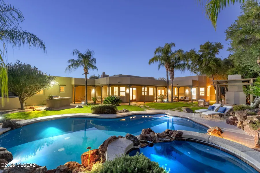 Discover this stunning custom residence in the highly desirable gated community of Canada Hills Estates. Tucked away on a quiet, low-traffic cul-de-sac and situated on over a half-acre, this impeccably maintained home offers 4 bedrooms, 4 baths, a den/office, 3-car garage, and a full private guest house--a rare and exceptional find. Step through the custom-designed courtyard into a home showcasing warm elegance, designer finishes, and gorgeous custom solid-wood doors throughout. The spacious chef's kitchen features stainless steel appliances, granite countertops, 42'' cabinetry, a large island with cooktop & vegetable sink, an oversized pantry, and a bright breakfast nook. Off the kitchen is a generous great room with fireplace, along with a separate formal dining room and a welcoming