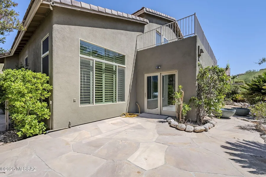 Welcome to 4318 N Sunset Cliff, a stunning home located in the prestigious gated community of Sabino Mountain. This beautifully maintained property features a gorgeous kitchen with an oversized island, stainless steel appliances, prep sink, under and above mounted lighting for added efficiency and a bright sunroom just off the breakfast nook-perfect for morning coffee or indoor-outdoor living. Dramatic plantation shutters throughout main floor offers privacy with class! The primary suite is conveniently located downstairs and offers a private retreat with a bump-out extension ideal for a sitting area, home office, or nursery. It also features ample counter space, two closets, separate water closet with bidet attachment, jetted soaking tub and travertine surround walk-in shower! Enjoy soaring ceilings, travertine flooring throughout the main floor and elegant formal living and dining rooms designed for all your entertaining. Upstairs, a spacious loft/family room opens to a large balcony with a hint of city views, perfect for enjoying Tucson's twinkling lights. With a 3-car garage, lush and private backyard landscaping, and abundant natural light throughout, this home is the ideal blend of luxury and livability. Don't miss your chance to live in one of the Catalina Foothills' most sought-after communities, just minutes from Sabino Canyon, hiking trails, and shopping!