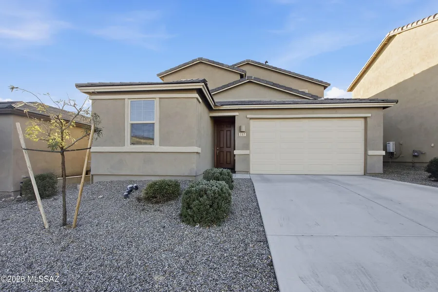 This gorgeous and spacious home offers a completely landscaped backyard, a cozy covered patio and open space behind! The floorplan features four bedrooms plus a dedicated den and a versatile loft. This home has been lovingly maintained and boasts enhancements such as plank tile flooring, a classic wooden banister, and a kitchen equipped with engineered quartz countertops and a gas range. In addition, practicality meets efficiency with massive under-stair storage and a three-car tandem garage already fitted with an EV charger outlet. To make the move even easier, the washer, dryer, and refrigerator are all included in the sale. Situated within the vibrant community of Rancho Sahuarita, residents enjoy unparalleled amenities including a scenic lake, green spaces, a massive pool complex, tennis and basketball courts, a workout room, and a second clubhouse slated to open in 2026!