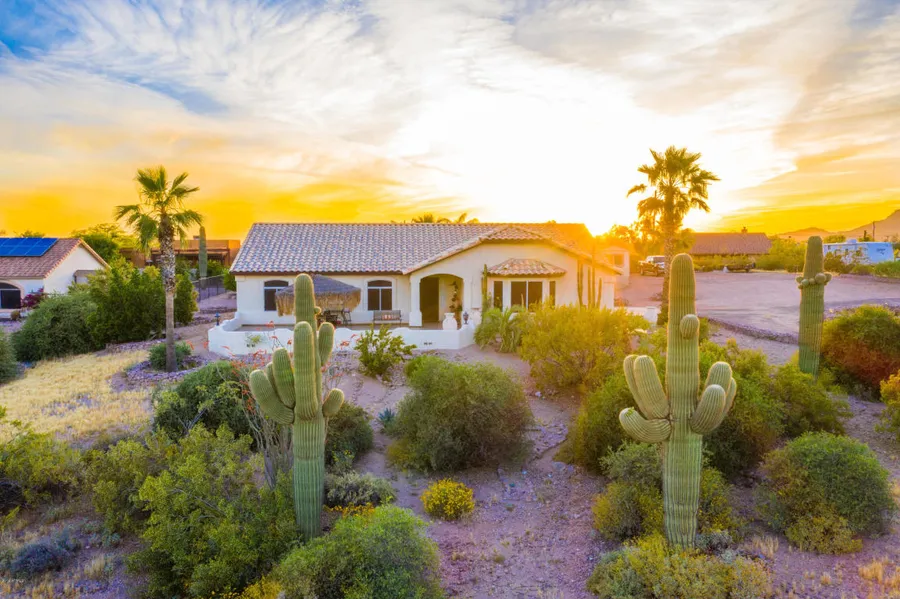 This cozy home is a homeowners out-door-living-dream! Must see the 620sqft cabana outside that can be fully enclosed while you watch sunrises or sunsets from your hot tub. The heated play pool in the midst of a tropical landscaped oasis can be enjoyed year round. Don't miss the epoxy garage and walkways! Inside you'll find updates and upgrades from a custom built in entertainment center in the great room, to the stunning raw-edged granite counter top at the kitchen bar seating area, to beautiful light/plumbing fixtures! They have sparred no expense making this home move in ready for its next owners. Though they currently do not have stables, this property is horse friendly with room for them! New AC system was installed at the end of 2018 brings peace of mind in the AZ summers.