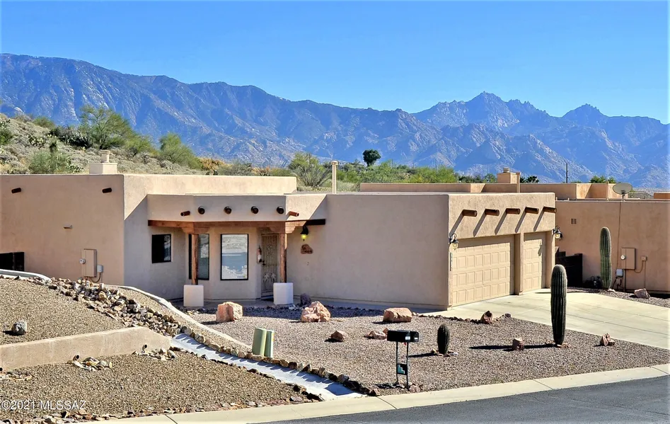 Don't miss this great single story home. Lovingly maintained and Beautifully crafted Sante Fe style in desirable Eagle Crest Ranch. You will love the floor plan. The substantial kitchen has granite counters, tons of cabinetry a large peninsula/breakfast bar and opens to the ample great room. There is a separate formal dining space that could also be used as additional living space or office nook. The sliding doors lead to an oversized covered patio that overlooks a sparkling pebble tech pool and spa, nicely landscaped, mature trees and mountain views. Very private. The home has ceramic tile throughout, high ceilings and great architectural features, a good sized master bedroom and bathroom with Travertine tiled walk in shower, it sits on a large lot and has a 3 CAR GARAGE! Heated Pool.