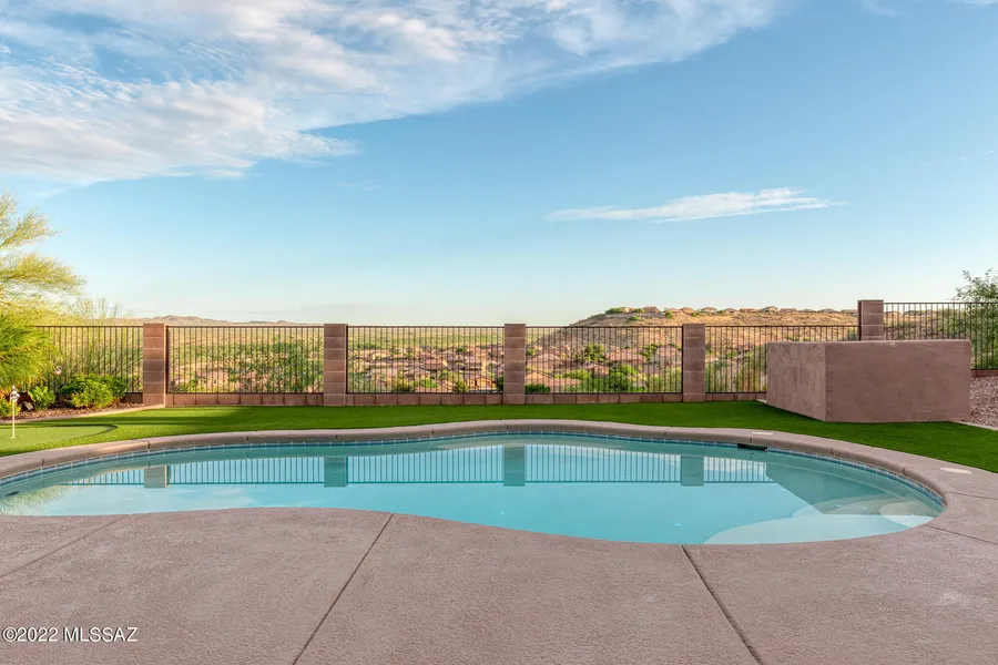 Gorgeous updated Sombra built home with forever views in all directions. This 3 bedroom, 2 1/2 bath, den/loft/office is not to be missed and will not disappoint. As you enter through the front door, this special home features formal living room, formal dining room with views of the Catalina Mountains and 20' high ceilings, gourmet kitchen with expansive kitchen island with plenty of seating, quartz counter tops, tile back splash, SS appliances, plenty of Maple cabinets for storage, tile through out home, kitchen overlooks family room with gas/wood burning fireplace, 2 bedrooms downstairs with Jack and Jill bath and a powered room for guests. Spacious upstairs master bedroom with viewing deck, executive height dual vanities, separate shower, garden tub and walk in closet. More...