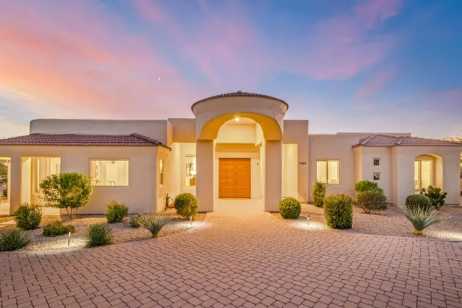 Enter into a realm of unparalleled luxury with this remarkable residence in Superstition Highland! The grandeur begins at the entrance with a sweeping circular driveway leading to an expansive 4-car garage. You're welcomed into a warm and opulent living room with a beautiful fireplace, making it an ideal spot for gatherings or tranquil moments alone. The interior further impresses with state-of-the-art surround sound, wood-look tile & carpet flooring, plantation shutters in all the right windows, recessed lighting, and a bright den with a lovely bay window and back patio access. The large eat-in kitchen is a chef's paradise, boasting a walk-in pantry, staggered cabinetry with crown moulding, built-in appliances, granite counters, tile backsplash, and a prep island with a breakfast bar. Owner's suite highlights direct outdoor access and a lavish bathroom comprised of two vanities, garden ...