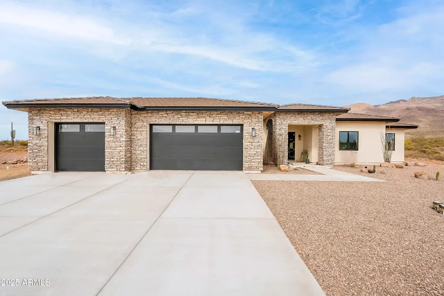This Exquisite Custom Home backs Private Federal and State Land. Spectacular views of Superstition Mountains, City lights, Dinosaur Mountain, Hiking Trails, and Golf Courses. This Luxury and Craftsmanship Home Features 2x6 Exterior Frame Construction, Urethane Foam, Sand Stucco Finish, Exterior Stone, Anderson 100 Series Dual Panel Glass, 3 Panel Retractable Walls of Glass in Great Room. Trane HVAC, Electric Car Charging Station, Security, Central Vac, Nest Thermostats, 42'' Cabinets, Quartz Countertops, Kitchen Island Waterfall, Pot Filler, Bosch Appliance Packages, Epoxy Garage, Landscaping Package and so much more. Designed for future Observation platform and space for future RV Garage, Shop and/or Parking.