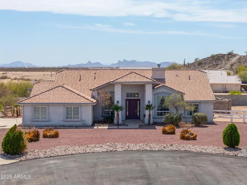 Experience timeless elegance in this stunning estate nestled on 1.5 acres on the quiet cul-de-sac in the foothills. Designed with an ''old money'' aesthetic, this home exudes sophistication with its dramatic vaulted ceilings. A two-way fireplace connects the living and family rooms, creating an inviting ambiance. The functional kitchen features tray ceiling, gas cooktop, double wall ovens, and the peninsula for entertainment. Enjoy year-round comfort with two new A/C units (2024). Step outside to your private oasis, where breathtaking mountainside views accompany you for the relaxation at pool and spa. A rare blend of luxury, charm, and serene desert beauty—bring your suitcase and move right in!