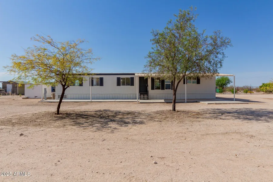 Embrace the charm of wide-open living with this 2-bedroom mobile home on a generous 1.24-acre lot! Inside, wood-look floors set a warm tone in the welcoming living room, while the kitchen delights with stainless steel appliances, white cabinetry, and plenty of counter space. Two bedrooms share a convenient Jack & Jill bathroom, perfect for functionality without sacrificing comfort. Step outside to a covered patio ideal for morning coffee or evening chats. The expansive backyard is a blank canvas ready for gardens, gatherings, or your dream outdoor retreat. With room to breathe, grow, and create, this property is all about possibilities. Make it yours and start turning visions into reality!