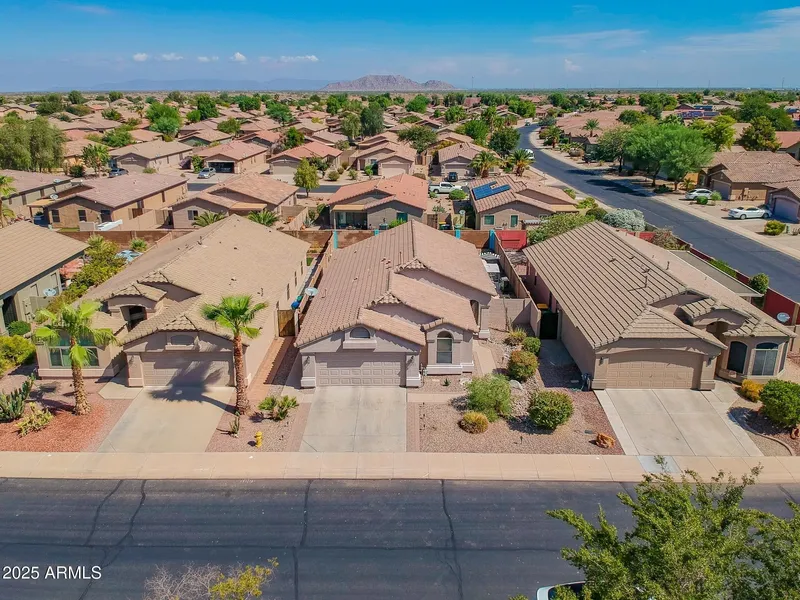 Gorgeous 3-bedroom, 2-bath home featuring tasteful upgrades throughout! The living area is highlighted by a stunning accent wall over the fireplace, while the kitchen peninsula adds both style and functionality. Step outside to your own private retreat—an inviting backyard with a sparkling pool, perfect for summer swims and entertaining. This home beautifully blends comfort and design, making it move in ready and truly one of a kind. All this in one of Maricopa's most sought-after neighborhoods, close to golf, dining, and shopping! up to $900 Home warranty included from Old Republic Home Warranty
