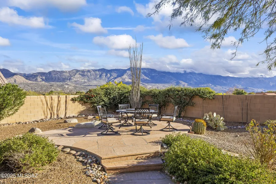 Views for days from this elevated mountain view lot offering total privacy located in the heart of HOA1. This stunning and luxurious Sonora offers an open-concept floor plan with high ceilings & oversized windows that fill the home with natural light. Fully remodeled by an Interior Designer with custom cherry cabinets in the kitchen and glass french doors to den. Recent updates include roof underlayment in 2024, exterior paint in 2024, brand new garage door system in 2025, new Arizona room in 2023 and new front security door in 2024. HVAC 2016. Garage extends 4 ft w/ built in cabinets surrounding. 18'' porcelain tile throughout. Room to build casita, golf cart garage or pool. SaddleBrooke is an award winning active adult community. LA related to Seller. Turnkey available with furniture.
