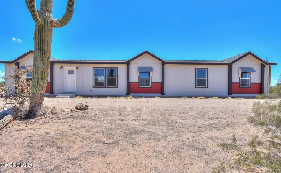 This versatile property offers flat, usable land with its own private water well, surrounded by mature saguaros and natural desert vegetation. The 2023 4-bedroom, 2-bath open-concept ranch-style manufactured home provides modern living in a serene setting just minutes from Marana's fast-growing area. Perfect for horses, hobbies, or building your dream setup. Bring your toys, set up the RV on-site ready to go with the separate sub-electrical pedestal for the RV hookup.