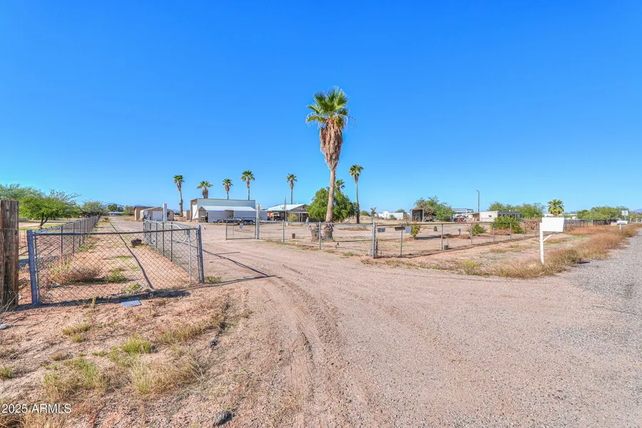 A little house in the desert! This 1BD/2BA home sits on 3.3 acres with public water and utilities. A covered carport accommodates an RV and two cars, complete with full hookups, two separate 1-car garages and 6 sheds for extra storage or workspace. Approximately 1,200 sq. ft. house is ideal for year-round living or as a lock-and-leave retreat. Perfect for RV travelers, hobbyists, or anyone seeking privacy and space without sacrificing convenience-just minutes from shops, dining, and amenities in the City of Maricopa and Casa Grande!