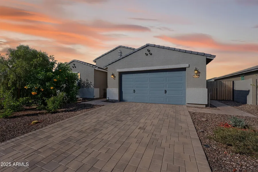 This NEARLY NEW, 5-bedroom, 3 FULL BATH, 3-car TANDEM GARAGE home offers 2,530 square feet of beautifully designed living space, blending modern finishes with everyday comfort. Situated on a RARE 8100 square foot lot with highly desirable NORTH/SOUTH EXPOSURE. Step inside to an open-concept floorplan centered around an ENTERTAINER'S KITCHEN featuring GRANITE COUNTERTOPS, STAINLESS STEEL APPLIANCES, a large island, and generous cabinet space - perfect for all your large gatherings. The SPACIOUS PRIMARY SUITE offers a TRUE RETREAT, complete with a sliding glass door that opens to stunning Arizona sunsets and a LUXURIOUS ENSUITE BATHROOM with dual sinks and a LARGE walk-in closet. Outside, enjoy a PROFESSIONALLY FINISHED BACKYARD designed for LOW MAINTENANCE and maximum enjoyment, featuring TURF AND PAVER LANDSCAPING, plus extra turf along the side yard ideal for play or pets. With NO NEIGH...