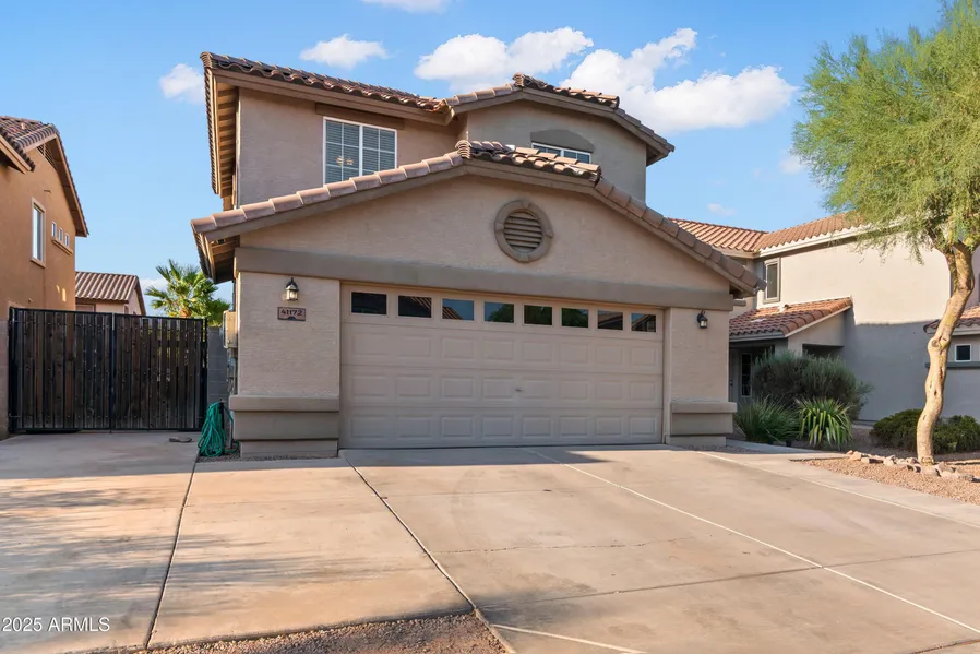 Look no further! This updated 5 bed, 3 bath home in Maricopa features desert landscaping, 2-car garage, RV gate, and a loft. One bedroom and full bath are conveniently downstairs. The completely remodeled modern kitchen offers sleek cabinetry, ample counter space, pantry, stainless steel appliances, recessed lighting, and an island with breakfast bar. The spacious primary suite boasts a dual-sink vanity, soaking tub, shower, and walk-in closet. The expansive backyard includes a covered patio and refreshing pool-perfect for summer!