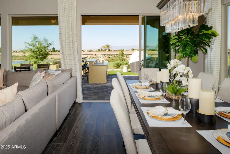 This Chroma floorplan creates the perfect indoor and outdoor space. The expansive kitchen with its large center island is a chef's dream, providing ample space for culinary creations and gatherings. This home offers dual primary suites, ensuring both comfort and privacy. The thoughtful addition of a ''smart space'' housing laundry facilities and cabinetry further enhances the convenience and functionality of daily living. Both bathrooms have been upgraded with tile surrounds and beautiful light fixtures. Additional features include shutters, a carpet-free environment and gorgeous views of the golf course. Start living the Good Life at Encanterra today!