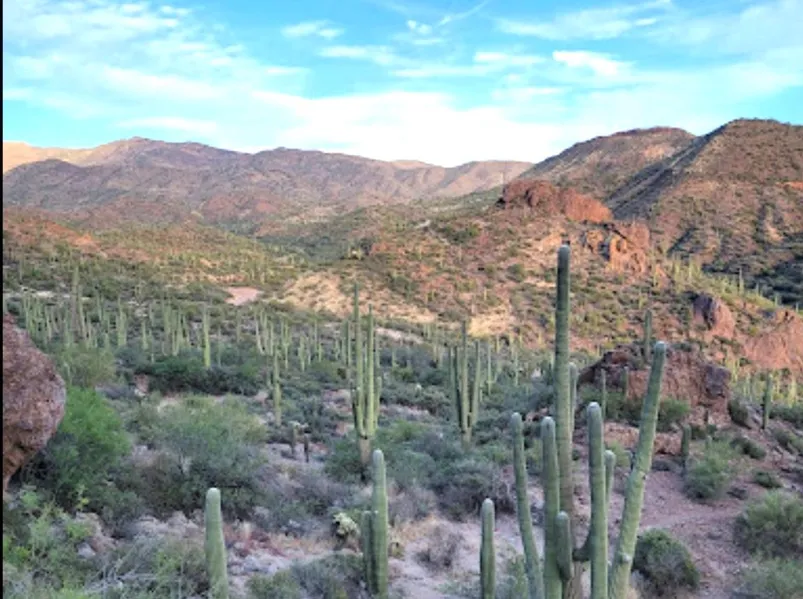Our claim is in the Tonto National Forest, which embraces almost 3 million acres of rugged and spectacularly beautiful country, ranging from Saguaro cactus-studded desert to pine-forested mountains beneath the Mogollon Rim. This variety in vegetation and range in altitude (from 1,300 to 7,900 feet) offers outstanding recreational opportunities throughout the year, whether its lake beaches or cool pine forest. Hikers, backpackers, wildlife observers and photographers will find many recreation opportunities here. Rugged topography and the area's Hewitt Canyon furnishes the solitude and secluded experience treasured by many wilderness visitors. The town of Queen Valley is a 11 miles south of the claim which has a store and gas station, and the larger Apache Junction is about 30 miles, off of route 60, just before the N. Queen Valley turnoff.