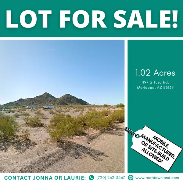Discover the charm of desert living with this 1.02-acre lot at 497 S Tusa Rd, Maricopa, AZ 85139, zoned for General Rural use. Whether you dream of building a one-family dwelling, a manufactured home, or a mobile retreat, this property offers endless flexibility to suit your lifestyle. Enjoy stunning mountain views, serene open space, and the convenience of being just a short drive from Maricopas amenities, schools, and shopping.