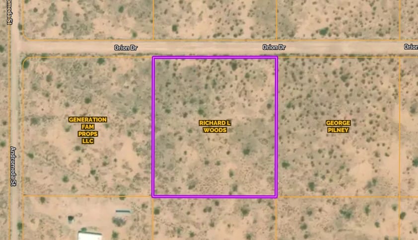 Coordinates: NW corner: 32.5307, -111.7313 (ROAD) NE corner: 32.5307, -111.7302 (ROAD) SW corner: 32.5296, -111.7314 SE corner: 32.5296, -111.7302