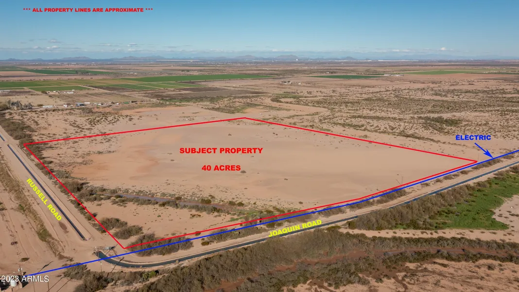 With Tractor Supply, Kohler, CCP Group, Lucid Motors plant doubling in size, Attessa Motorsports Park underway, the town of Casa Grande is expecting 20,000+ NEW JOBS! That's the town's population growing by it's current population. Where will everyone live? ***DON'T MISS YOUR CHANCE TO INVEST AHEAD OF GROWTH****This property is just south of Interstate 8 between Russell Road and Montgomery Road full Diamond Interchange. Mountain Views! Close to Proposed I-11 Corridor! Just south of Casa Grande - only an hour to Sky Harbor, Phoenix & Tucson! Russell Road paved from Hwy 84 to Arica Road. Located in a prime farming area. Power adjoining property along Joaquin Road. General Rural zoning. More photos and drone Aerials coming soon! Adjoining 40 Acres to east also ava