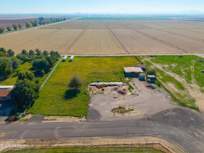 Horse property on 2 beautiful acres with stunning mountain views-barndominium plans available! New pasture fencing added in 2021. Property offers a lush grass pasture perfect for grazing, up to 6 stalls, barn with auto waterers, tack shed, hay barn, flood irrigation for low-cost watering, city water, and a 400-amp electric pedestal ideal for RVs and a future shop. Conveniently located close to the city for amenities and schools with easy paved road access. Located in the desirable Ranches at Maricopa where properties rarely become available.