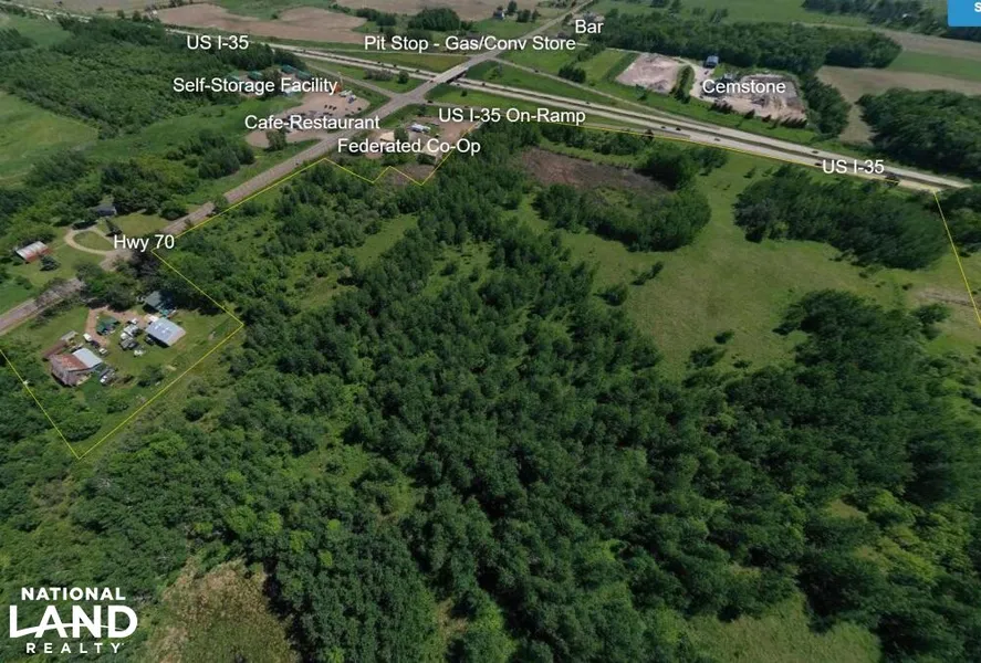 37.95 Acre Commercial Land well-situated at the southwest junction of US I-35 and Hwy 70, City of Rock Creek/Pine City, MN. WILL DIVIDE INTO SMALLER COMMERCIAL PADS TO MEET YOUR NEEDS!