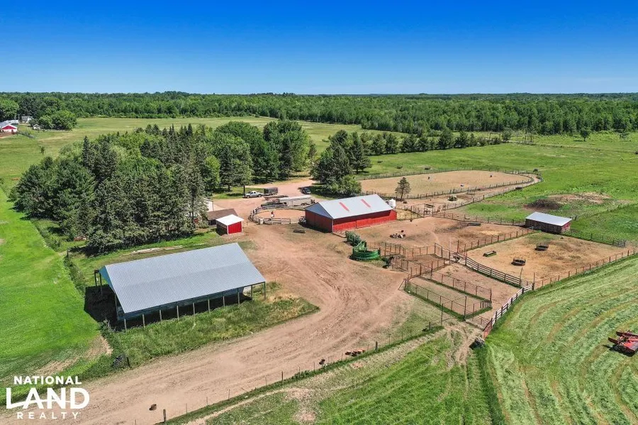 Stunning turn-key 527-acre ranch in northern Minnesota that will provide lifestyle and investment opportunities!!-Lifestyle: a rare find for this large a parcel so close to the Twin Cities and just minutes off I-35-Beautiful setting on land offering tillable, pasture, woods, ponds, and trails throughout-Hunters' paradise with deer, bear, grouse, turkey, pheasant, waterfowl, bobcats, wolves, fishers, and more-Huge arena and corrals for your horses and/or cattle;-Income opportunities abound in timber sales, rental of pasture and fields, and hunting leases. Please scroll down for additional information and tabs. Key words: income; investment; agriculture; cattle; hunting; equestrian; woods; trails.