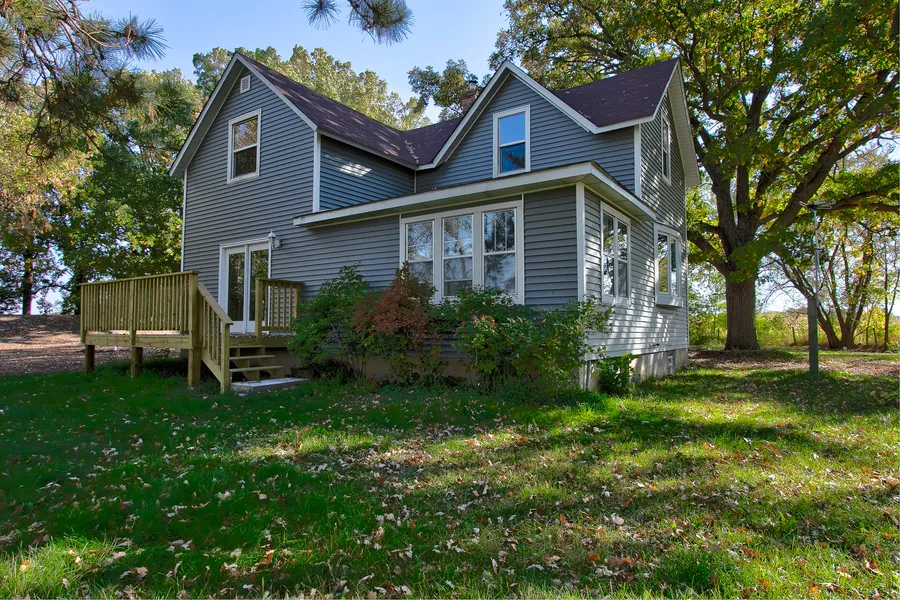 3 bed 1 bath home on over an acre with nice horseshoe driveway and several storage sheds. Main floor offers hardwood floors and tongue & groove vaulted ceiling in Living room. Main floor bedroom and 2 bedrooms upstairs. Several nice updates including a new front deck and septic system! Additional deck out the back of home as well. Living room has a nice bay window. Home is being sold As-Is. Great opportunity to bring your finishing touches and enjoy the private setting on this wooded lot.