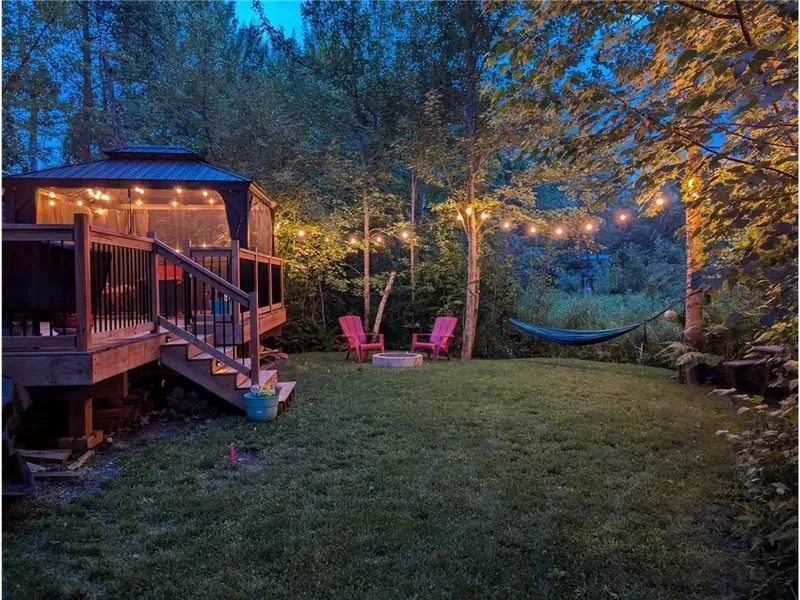 Enjoy outdoor living at its finest with a large deck that includes a screened-in gazebo, child/dog gates, and stair lighting for added safety and ambiance. The outdoor kitchen, complete with a mini fridge, is perfect for entertaining or relaxing by the pond. Additional storage is provided by a durable Suncast shed, and much of the personal property will be included in the sale for a turnkey experience.