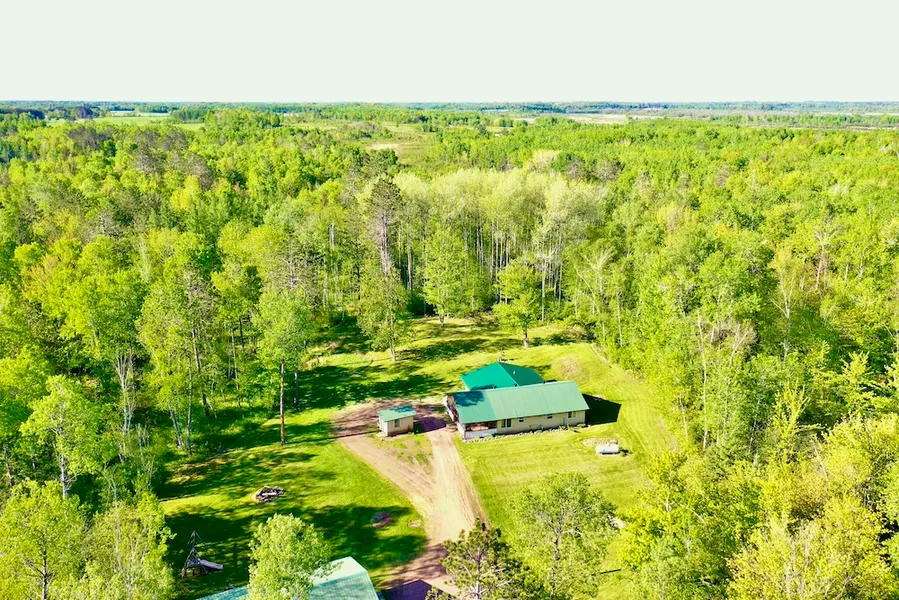 This beautiful country home is located down a quiet road, providing a very tranquil setting. Enter the home through a large 3-season porch. The home's open concept has a large kitchen next to the vaulted tongue and groove pine ceilings in the family and dining room. The primary bedroom has a good-sized walk-in closet and attached laundry/primary bath with a tiled shower. The other bedroom and office are also very spacious. The home has in-floor heat and on-demand hot water, along with a steel roof and vinyl plank flooring throughout the common areas, making it a very efficient and durable home. There is also a 24x47.5 heated shop with 14' sidewalls, perfect as a large work area or to store an RV or other recreational equipment. The property is a nice mix of mature timber and thick low ground, great for holding all kinds of wildlife. The timber is a mix of mature hardwoods and towering red pines. There is also a nice trail system on the property. Excellent hunting for deer, bear, turkey and upland game. It is about 90 minutes from the Twin Cities and 1 hour from Duluth. It's also close to ATV/snowmobile trails and just 20 miles from the Grand Casino in Hinckley.