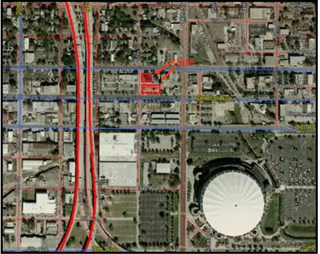 Description: The site is a .67 acre parcel located on Central Ave., just east of I-275 in downtown St. Petersburg, FL. The site has a small