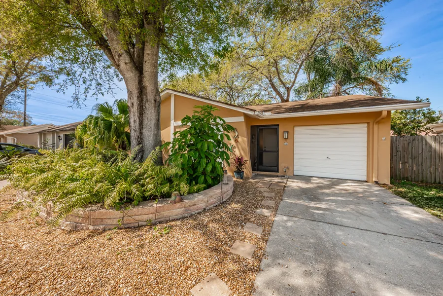 Terrific Location! Move-In Ready! This adorable home is updated and has great curb appeal and low maintenance yard! An open floor plan lends to a spacious feeling upon entering the home which has 2 bedrooms, 2 full baths and and an oversized one car garage. The large living room has laminate flooring and is adjacent to the dining room and kitchen. The gorgeous updated kitchen boasts beautiful raised panel cabinetry (soft close), granite countertops, breakfast bar, stainless steel appliances (2 yrs. old), and decorative lighting. Large master bedroom has an ensuite bathroom with shower. The 2nd bedroom easily accepts a queen size bed. Both bathrooms have updated vanities and commodes. There is a large screened porch accessible to the dining room and master bedroom. In addition, this home offers a spectacular Florida outdoor living space with nature abound, peace, and tranquility! Just step outside the rear sliding glass doors to the lush tropical paradise with a brick paver patio and walkways throughout the landscaped, fenced backyard. The oversized garage offers storage, garage door opener, and includes a washer and dryer. The Seller's are in the process of installing a BRAND NEW ROOF! This home also features a NEW WATER HEATER, NEW A/C SYSTEM, and updated ELECTRICAL PANEL. In addition, Buyer will receive at closing, a ONE YEAR HOME WARRANTY which includes appliance repair. This great location is nearby to the thriving downtown areas of Dunedin and Safety Harbor and is approximately a 15 minute drive to Clearwater Beach. THERE IS A COMMUNITY POOL at the end of the street. You can walk to Valencia Park from the community pool. Valencia Park offers Tennis and Basketball courts and playgrounds. The general locale offers shopping, restaurants, banks, parks, Pinellas Trail and much more!