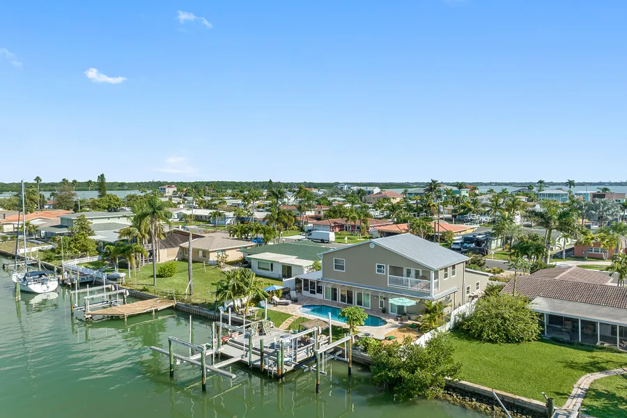 5 BEDROOM - 4 BATH - 2808 Sq Ft.. BOATERS DREAM .. BUYER CAN ASSUME SELLERS VA LOAN AT 3%.. OVER $300,000 IN RENOVATIONS. As you enter this Open Floorplan Designed Home with a Hurricane Impact- Etched Palm Tree- Glass Front Door - your eyes are drawn immediately to the Outside Water. From your Custom Designed Deep Pool with New Extended Sun Deck - New PEBBLE TECH surfacing throughout - and all New Pavers (2021) surrounding the Pool. New Pool Heating / Cooling System (2021) Then, the Boater's DREAM, not 1 but 2 Boat Lifts. One up to 10,000 Pound Capacity & one up to 20,000 Pound Capacity ( less than 4 yrs 'new' ). Deep Water For Sailboats & You'll be out to Sea in just 5 minutes through World Renowned John's Pass. The Oversized Deck is perfect for all your relaxation time over the Water - Enjoying Sunsets and Entertaining many friends that will be visiting this Home because it's less than 10 minutes' walk to the BEACH. Plus, the MADEIRA BOAT PARADE passes right by your deck twice! The lush Tropical yard (front & back) has been redesigned(2021) and maintained by current owners to make yard work a breeze. Step back inside to the Amazing Sunroom with High Impact sliding doors to west and north (3 with sliding Plantation Blinds) that allow the beautiful Sunlight in year round. Open the north sliding doors year round to the New Porch Roof and Screening (2022) area for those wonderful Florida Breezes - Or keep them closed and watch how efficient your new Oct 2022 TRANE AC really is (downstairs unit). There are 3 Bedrooms and 2 Bathrooms Downstairs on the Main Floor (1 with a brand new 2023 Laundry room) , including a downstairs En-suite MASTER Bedroom complete with a Walk-in Closet & Private Sliding Doors to the Pool & Lounging Area. The Second En-Suite Master is Upstairs with a Balcony overlooking the Intracoastal Waterway - Plus a Fully Remodeled Bathroom (2022). The Upstairs Addition is a must-see with it's New Beautiful Wooden Stairs with 2 closets (1 up & 1 down) for extra STORAGE / Closet Space. Upstairs, You will also find another huge En-Suite Guest Bedroom to the left, a Split Floorplan perfect for Privacy. The Chefs Kitchen has plenty of storage for all your Cooking Gadgets and 2 Breakfast Bars with seating up to 8. The Appliances are Jenn air refrigerator, Dishwasher, & Stove/oven with Down Draft Fan. The new 2023 built-in High Ponte is an all in 1 microwave with Convection Grill Roast features included. All protected by the house water softener and Home Appliances Choice Warranty. The Dining room area, located by the kitchen, with sliding doors to the screen room can easily accommodate your large family table. The Family room, open near the kitchen, allows you to cook and enjoy your time with Family & Friends too. Which you will have plenty of parking for with the circular driveway and double garage with extended driveway. Whole House is protected under a pest control plan that includes quarterly Inspections . Welcome to Florida Waterfront Living . 5 Bedroom / 4 Bath With over 2800 Sq Ft of Living Space.. Great Family Home at a Good Price.. No Water During Last Storm. Just reduced below value for quick sale.