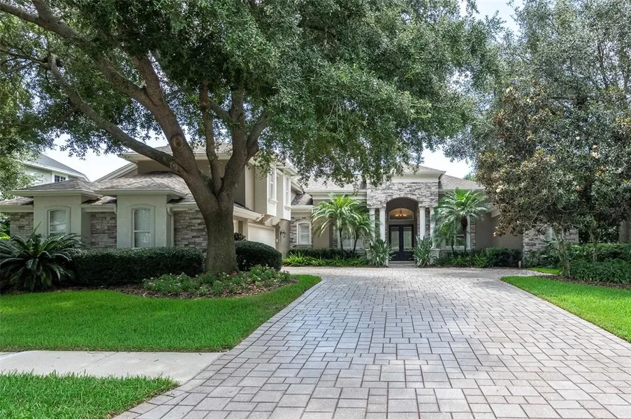 Under contract-accepting backup offers. New price! New opportunity! Nestled in this serene guard-gated, golf course neighborhood of Wentworth, this opulent four-bedroom, three-bathroom residence spans approximately 4,000 square feet of sophisticated living space. The exterior exudes grandeur with meticulously added stonework and a driveway adorned with new road lock shell pavers. The travertine entryway ushers you into a world of luxury, where new luxury wood-look vinyl flooring unfurls throughout the home, harmonizing with the hand-scraped hardwood floors that grace the primary bedroom. The primary en suite is a lavish retreat, featuring a garden tub, a separate shower, and sprawling vanity, designed for ultimate luxury and relaxation. Architectural elegance is evident in every corner, from the tray and coffered ceilings to the graceful arches and niches throughout. The chef's kitchen is a culinary masterpiece, complemented by rich hardwood maple cabinets, upgraded granite countertops, beautiful modern light fixtures and equipped with a Sub-Zero refrigerator, Viking gas stovetop, Bosch dishwasher, not to mention the prized Sub-Zero wine cooler. The open, spacious living area, anchored by a gas fireplace and framed by plantation shutters, creates an ambiance of warmth and sophistication. The outdoor space is a private oasis, boasting a saltwater pool, spillover spa, and amazing view of the golf course. New rescreened pool enclosure and new pool and spa heater. This home is a haven of modern convenience, featuring a whole-house Generac generator, leaf filter gutters, newer water softener, new water heater and AC units. The property also offers a dedicated wine room, a state-of-the-art media room, office/den, and expansive upstairs loft or bonus room, providing ample space for entertainment, work, or relaxation. This is not just a home; it's a lifestyle statement for the discerning buyer seeking luxury and comfort. Wentworth offers a membership to the golf course for additional fees. You will also enjoy use of the beautiful clubhouse and Scratch House Pub restaurant. Wentworth is 20 minutes to the nearest beach, 10 minutes to John Chestnut Park and Lake Tarpon, easy access to St Pete and Tampa where locals enjoy entertainment venues and amazing restaurants. Schedule your appointment today!