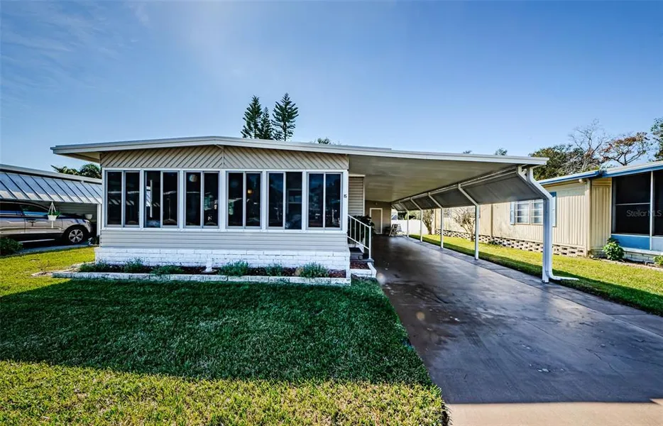 **New Price Alert! Incredible Value on This Mobile Home!** Move-In Ready 2-Bed, 2-Bath Home in Desirable Stonehedge on the Hill 55+ Community - You OWN the Land! Welcome to resort-style living in the highly sought-after Stonehedge on the Hill community! THIS FULLY FURNISHED AND MOVE-IN READY 2-bedroom, 2-bath home is the perfect place for the next chapter in your life. Best of all-NO LOT RENT! THE LAND SHARE IS INCLUDED IN THE PRICE, and the LOW $340/MONTH HOA FEE INCLUDES: water, sewer, trash/recycling, lawn care, basic cable (70+ channels), Internet, and pest control. Step inside and be amazed by the spacious open floor plan, flooded with natural light. The large Great Room seamlessly connects to the 182 sq. ft. Florida Room (not included in heated square footage)-a perfect spot to relax or entertain. Enjoy the privacy-enhanced windows that let you see out while keeping prying eyes away. The fully equipped kitchen offers ample cabinet space, a closet pantry, and a washer/dryer, with all appliances included! The dining room features a built-in buffet with cabinets and a bookcase, adding both charm and functionality. The oversized primary bedroom is a true retreat, featuring his and her closets, a built-in dresser and desk, and a private ensuite bath with a step-in shower. The second bedroom is spacious and offers a built-in dresser for extra storage. The beautifully updated guest bath also includes a step-in shower. EXTERIOR HIGHLIGHTS INCLUDE an expanded 2+ car carport, a storage shed, and well water for irrigation. NOTABLE UPGRADES include a brand-new AC and heating system (2024), double-pane windows (2012), new siding (2012), and new high quality laminate flooring in the living areas with carpet in the bedrooms. STONEHEDGE ON THE HILL OFFERS a vibrant and active 55+ lifestyle with a heated pool, shuffleboard courts, game rooms, and a clubhouse equipped with a large meeting hall, modern sound system, 60" plasma TV, and a library. Participate in social activities, stay updated with the monthly newsletter, and take advantage of the SIDE GATE TO MANGO STREET for easy access to Fred Howard Park Beach, Sunset Beach, Tarpon Springs Golf Course, and the historic Tarpon Springs Sponge Docks. Conveniently located near shopping, entertainment, medical facilities, and two major airports-just 22 miles to Tampa International and 18 miles to St. Pete/Clearwater Airport-this home offers the perfect balance of relaxation and accessibility. Don't miss your chance to own this meticulously maintained home in one of the area's most desirable 55+ communities. Schedule your private showing today!