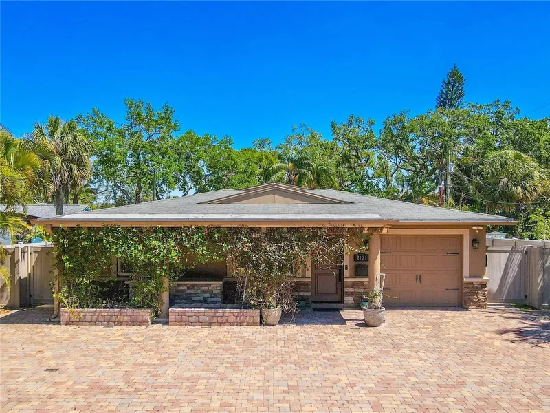 Welcome to your personal oasis just minutes from Boca Ciega Bay, offering the perfect blend of comfort, sophistication, and flexibility in one of St. Pete’s most desirable neighborhoods. This beautifully updated 4-bedroom, 4-bathroom home delivers the best of Florida living—with a one-of-a-kind 700+ sq ft bonus room, dual primary suites, and a private backyard putting green. From the moment you arrive, the curb appeal shines with a pavered driveway and parking pad framed by swaying palm trees. Inside, you’ll find neutral luxury vinyl flooring, elegant wood moulding, hurricane-impact windows, and designer light fixtures throughout. The open living and dining areas flow effortlessly, setting the stage for both everyday comfort and elevated entertaining. The kitchen is a chef’s dream, featuring solid wood cabinetry, granite countertops, an artistic tile backsplash, and new stainless steel double ovens and dishwasher. A gas cooking island with a stainless exhaust hood, counter seating, and a butler’s pantry/bar area with built-ins make serving guests a breeze. The spacious family room boasts recessed LED lighting, a Monte Carlo ceiling fan, and French doors that open to the show-stopping 700+ sq ft bonus room. Complete with travertine floors, vaulted wood-plank ceilings, hurricane-impact windows, Sonos speakers, and a second full kitchen with granite countertops and a gas cooktop—this versatile space is perfect for hosting, gaming, or multi-generational living. Two primary suites offer privacy and comfort, each with luxury vinyl flooring and updated en suite baths. The first primary features a custom walk-in closet, spa-style bath with a hydro tub, bidet, and mirrored vanity. The second offers built-in cabinetry, dual closets, and a beautifully designed bath with a rain shower and vessel sink. The additional bedrooms include modern updates, custom closets, and private or semi-private baths. Step outside to your fenced backyard retreat with stone pavers, a cozy fire pit, and your very own putting green. Every detail has been considered—from new A/C ductwork and LED lighting throughout to a Tesla charger, water softener, and well-fed sprinkler system. Jungle Terrace residents enjoy proximity to Walter Fuller Park, featuring a recreation center, pool complex, lake, and scenic walking trails. With beaches, dining, and shopping just minutes away, this home truly has it all—space, comfort, and a touch of resort-style living.