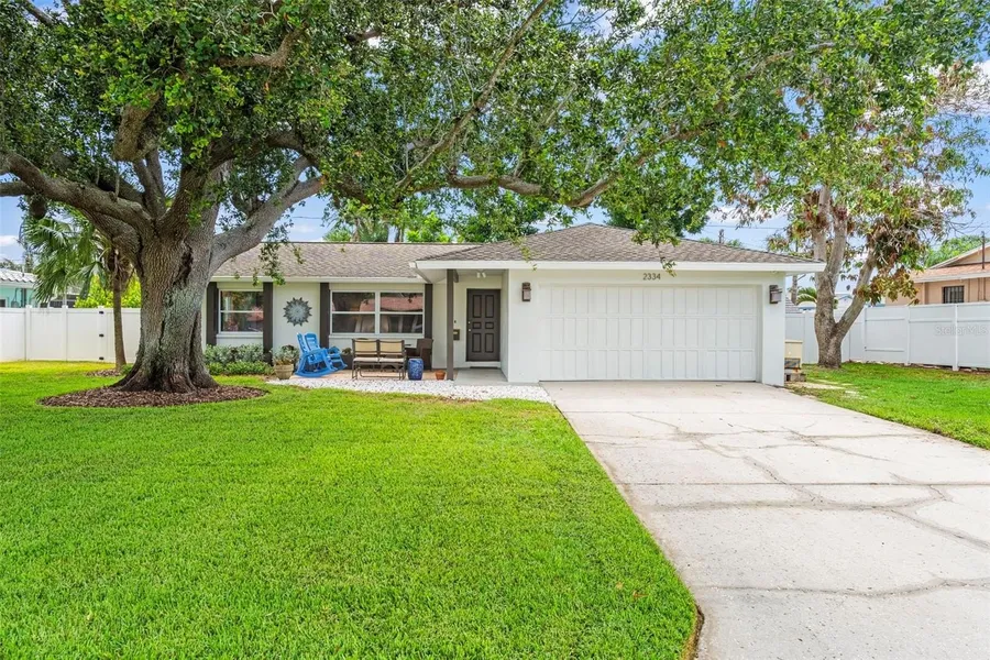 Welcome to Tropical Shores Drive. This meticulously maintained 3 bedroom, 2 bathroom single-family gem is located in the highly sought-after Tropical Shores neighborhood in Southeast Saint Petersburg. The front yard features a welcoming patio area nestled beneath the cooling canopy of a majestic oak tree. The home offers a split floor plan with an open concept layout that provides a seamless flow for indoor and outdoor entertaining with a large family room that leads out to a cozy, pavered screened patio. With a beautifully landscaped backyard, you can fire up the grill and host weekend cookouts for friends and family in your private oasis. Additional features include solid surface flooring throughout, an updated kitchen with granite countertops, stainless steel appliances, updated bathrooms, 2 car garage and a fenced backyard. A whole-house generator provides peace of mind during power outages. New Roof 2026, HVAC 2018. Just a short walk to waterfront Lassing Park and minutes from downtown Saint Petersburg with easy access to the interstate and beaches. This move-in ready home combines comfort, style, and location. Don't miss your chance to make this property yours, schedule a showing today!